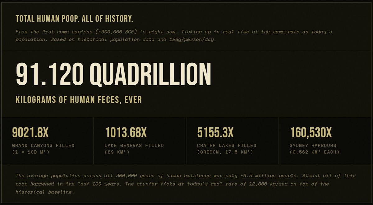 💩 Ever wondered just how much humans poop at any given time around the globe?